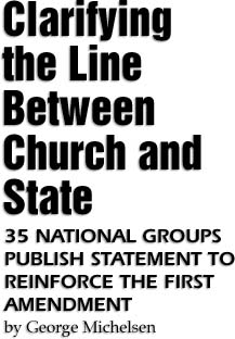 Clarifying the Line Between Church and State. 35 National Groups Publish Statement to Reinforce the First Amendment by George Michelsen