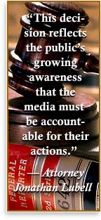 But libel expert and attorney Jonathan Lubell notes that to focus on the damages award and what it says is to miss the point. This decision, he said, reflects the publics growing awareness that the media must be accountable for its actions. Nearly every other powerful institution in this country has some accountability for its actions and takes responsibility when they do wrong by the public. The major media have been the least accountable and this is one of many signals which tell us that most Americans do not want it that way.